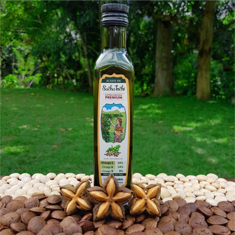 Nuestro aceite de Sacha Inchi Extra Virgen Premium prensado en frío es un producto 100% de origen vegetal, cultivado en el departamento de Santander por familias campesinas de la región y con el acompañamiento de SachaCol SAS, garantizando así la más alta calidad, la cual se ve reflejada en los porcentajes de ácidos poliinsaturados (Omega 3-6-9) especialmente el Omega 3 que supera el 50% de la composición química del aceite.